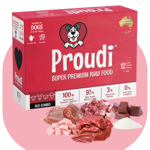 PROUDI RED COMBO RAW PATTIES FOR DOGS 12x200g $36.99