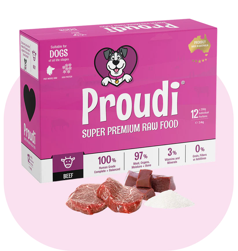 Proudi raw Beef Patties for Dogs is a single protein saviour.